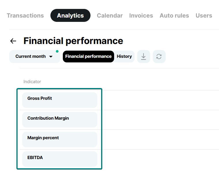 Financial performance is a report that helps businesses assess profitability based on real income and expenses in Finmap. The report allows you to see how key indicators are formed, which areas generate income and which incur expenses, and how these results change over time.
