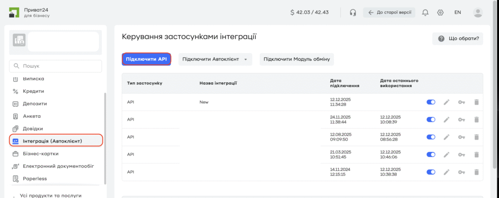 ㅤ3.ㅤ У Приват24 Бізнес необхідно створити нового Автоклієнта. Для цього перейдіть в меню в «Інтеграція (Автоклієнт)» на бічній панелі