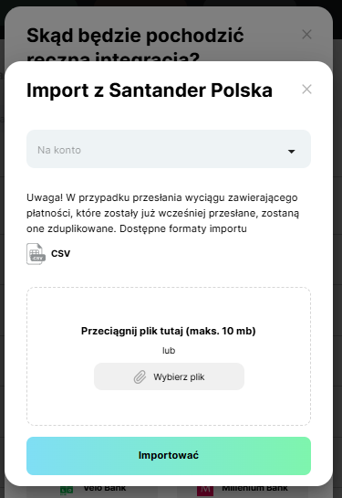 ㅤNiestety, nie wszystkie banki oferują możliwość automatycznej synchronizacji danych, dlatego zespół Finmap opracował dla większości z nich funkcję ręcznej integracji (importu wyciągów). Pozwala to na szybkie dodawanie transakcji do usługi, bez konieczności ich ręcznego wprowadzania, oszczędzając czas i unikając błędów.