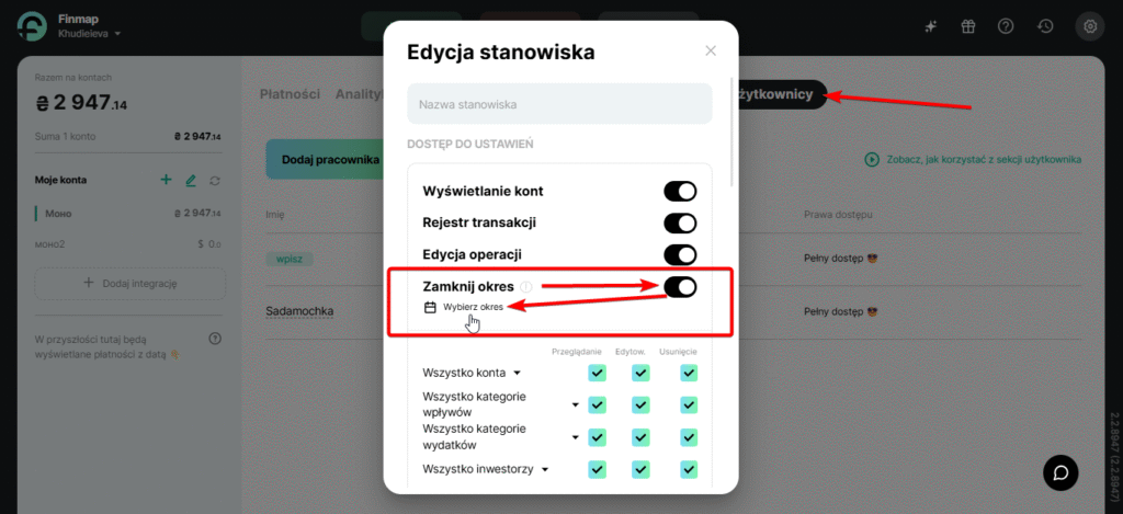 ㅤJeśli zdarza się, że któryś z Twoich pracowników przypadkowo zmieni płatność w już zweryfikowanym okresie, w wyniku czego kwoty na kontach przestaną się zgadzać, możesz temu łatwo zapobiec, korzystając z funkcji „Zamknij okres” w Finmap.