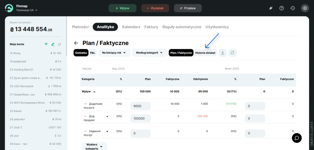 📑 Historia działań w raporcie „Plan/Wykonanie”