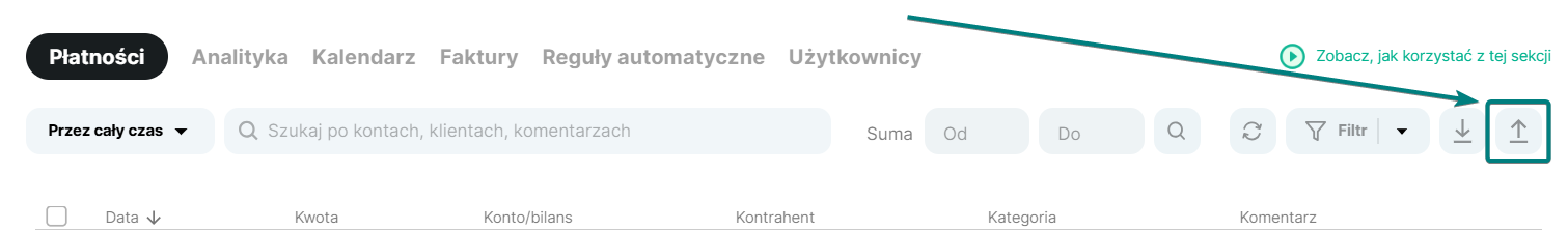 Aby pokazać, że są to transakcje przychodowe (+), użyj kolumny „Na konto”.