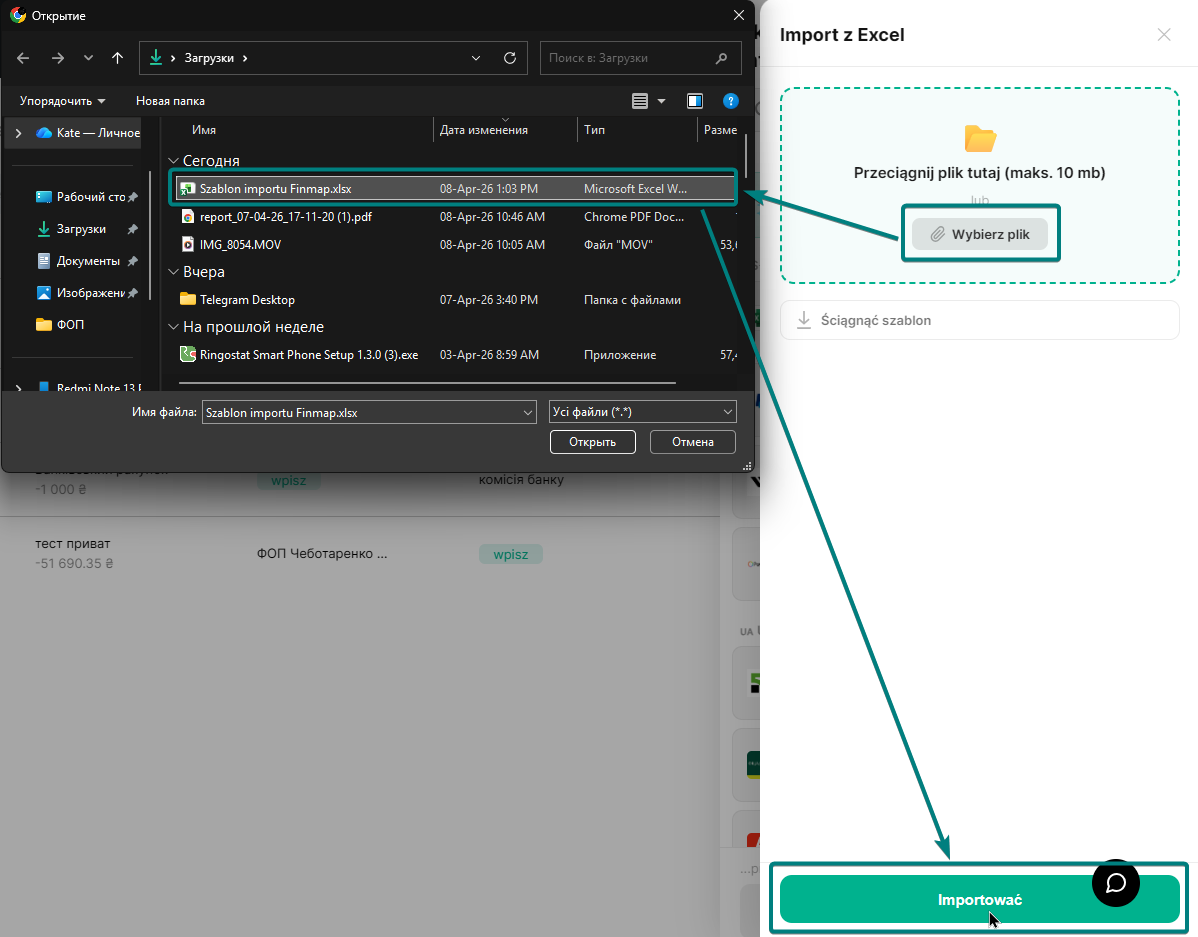 Etap 3: Zaimportowanie informacji do Finmap