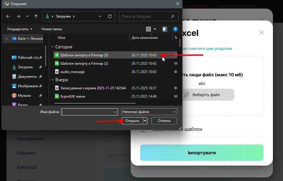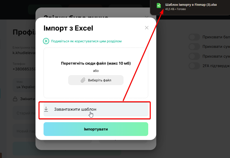 Крок 3: Імпорт інформації у Finmap